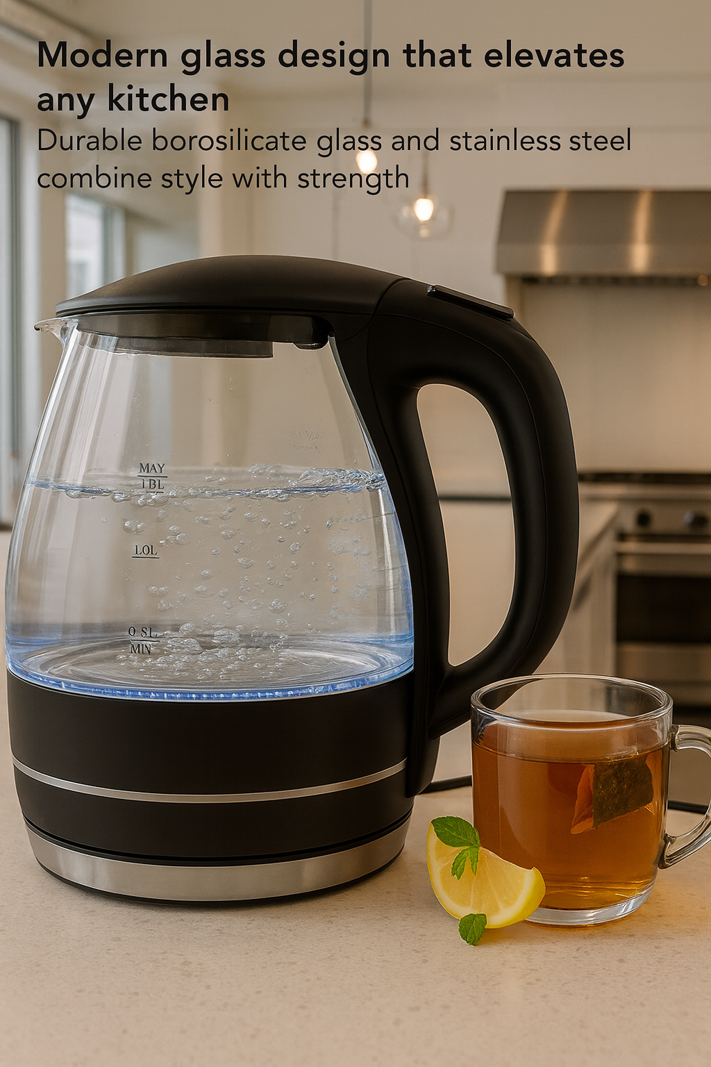 - Stylish & Durable Design: Electric kettle made with heat-tempered, stain-resistant glass and stainless steel, featuring LED lights for a modern look and long-lasting performance.