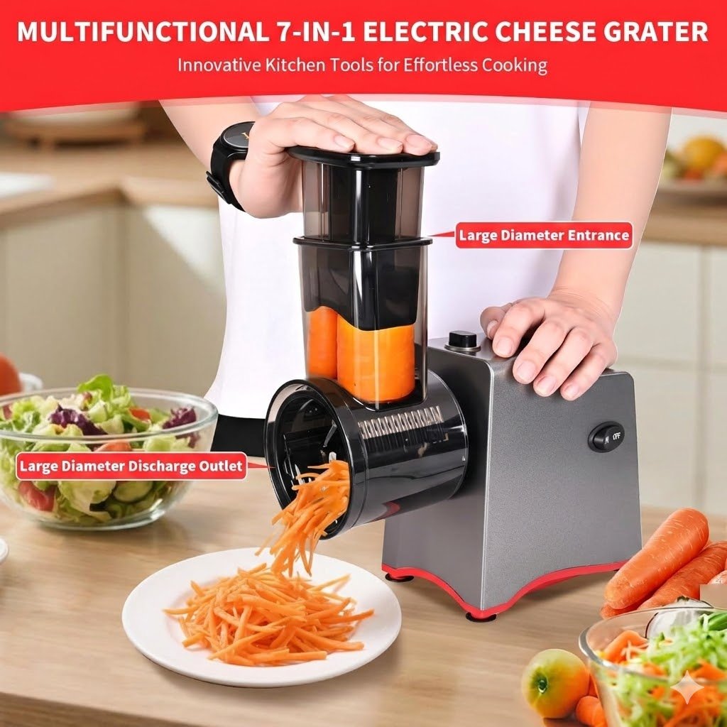 7-in-1 Electric Cheese Grater and Slicer Shredder 250W