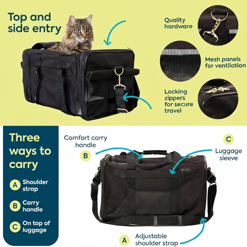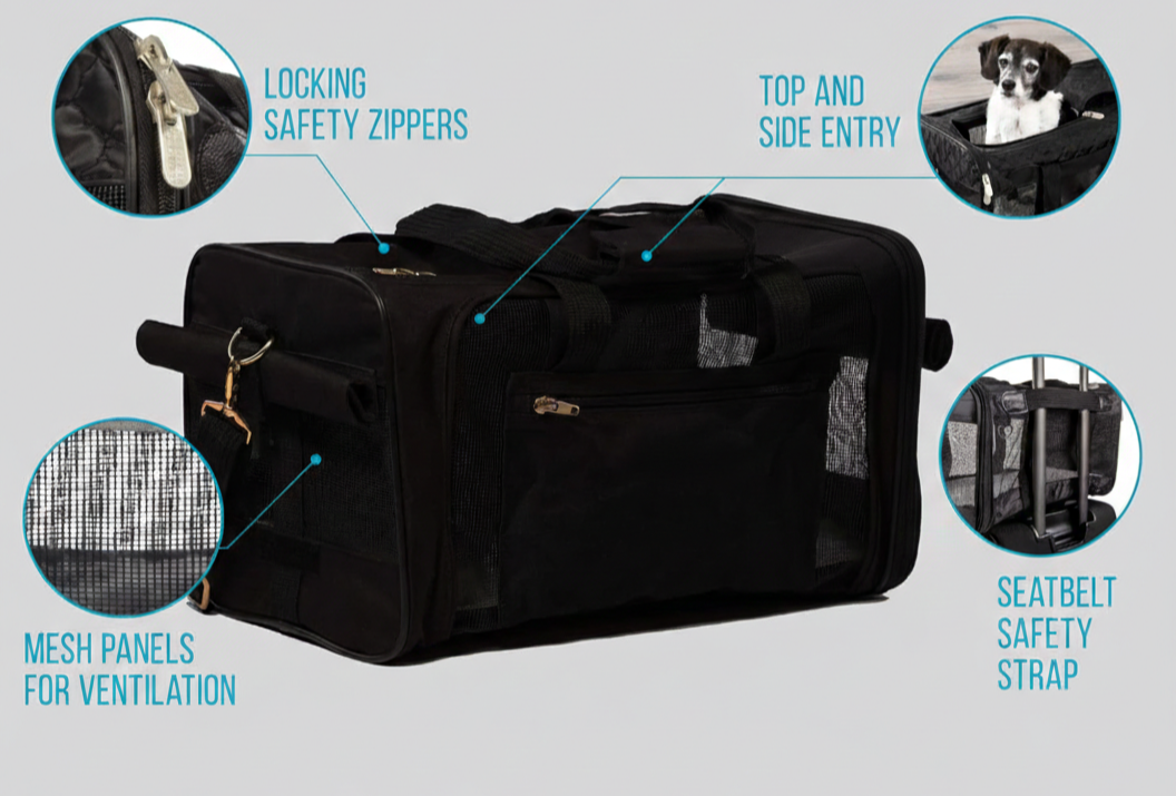 Black Soft-Sided Pet Carrier, Guaranteed On Board for Air Travel
