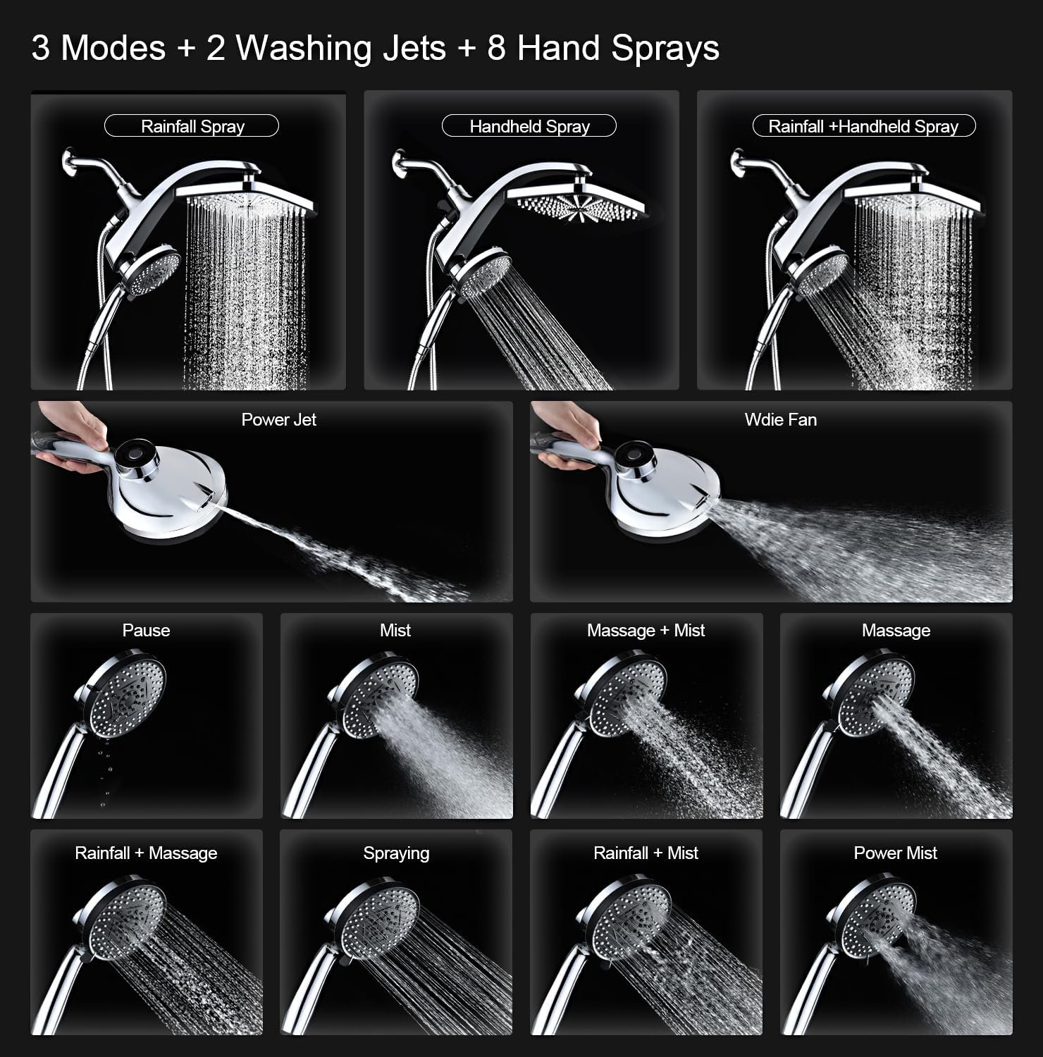- Dual Function Convenience: Easily switch between fixed rainfall, handheld spray, or both at once using the bracket knob, combining flexibility with water efficiency.