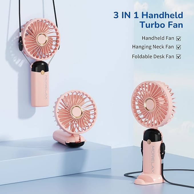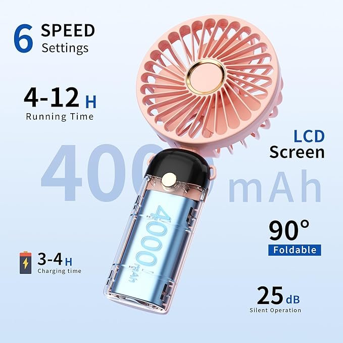 - 5-in-1 Versatile Design: Use as handheld, table, or pocket fan