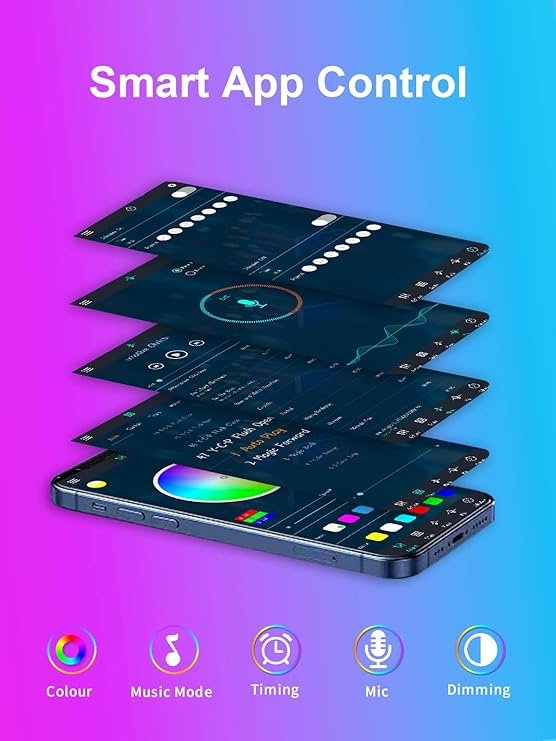 - APP & Remote Control: Easily adjust brightness, colors, lighting modes, and timers through Bluetooth app or included remote control